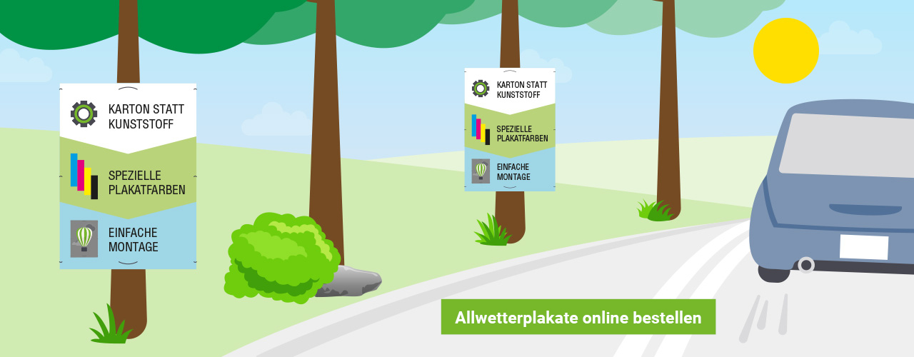 Gedruckte Allwetterplakate sind die interessante Alternative zum Druck von Hohlkammerplakaten aus Kunststoff. Sie werden überwiegend aus Recyclingmaterialien hergestellt. Alle Allwetterplakate von Staudigl-Druck sind ein Produkt mit finanziellem Klimabeitrag. Das ideale Plakat.