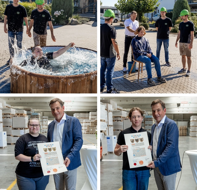 Nach der Zeremonie erhielten die Täuflinge ihre Gautschbriefe und wurden damit offiziell in die Gemeinschaft der Druckerszunft aufgenommen. Die tief im Handwerk verwurzelte Tradition wurde von allen Mitarbeiterinnen und Mitarbeitern mit großem Interesse verfolgt.